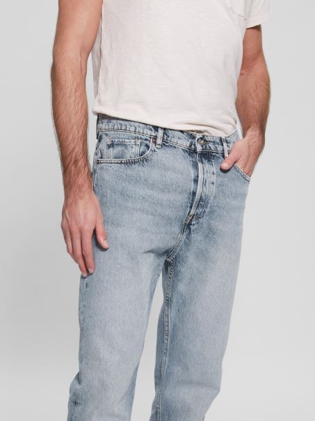 Ridică-ți Aspectul Clasic De Zi Cu Zi Cu Acești Blugi Din Denim. Cu Decolorare și Mustață, Plasture Cu Logo La Spate, Construcție Cu Cinci Buzunare și Nasture Cu Fermoar. Realizat Cu Fibre De Bumbac.