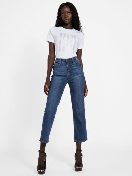 Strălucește în Aspectul Tău De Zi Cu Zi Cu Acest Tricou Cu Logo. Cu Un Design Impodobit Cu Strasuri In Fata, Decolteu Si Maneci Scurte. Conține Fibre De Bumbac Organic.
