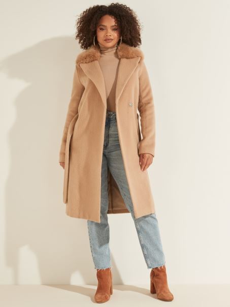 Home| Femei| îmbrăcăminte| Palton Cu Brâuri Amestec De Lână Guess
