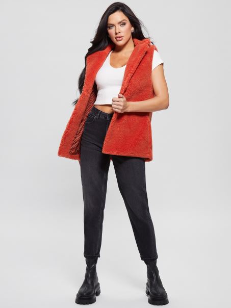 Vestă Cu Paragate Concepută într-o Fabricație Moale De Pluș, Cu Un Guler Pliat Crestat și Un Design Grafic Tricot La Spate. Căptușeală Interioară Mătăsoasă, Buzunare Laterale și închideri Cu Cârlig Ascunse în Față.