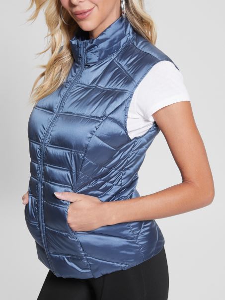 Pentru Acele Zile Ușor Răcoroase, Atingeți Această Vestă Puf Care Se împachetează, Cu Un Design Matlasat, Fals Decolteu, Buzunare Cu Fermoar și închidere Cu Fermoar. Plastic Oceanic Reciclat.