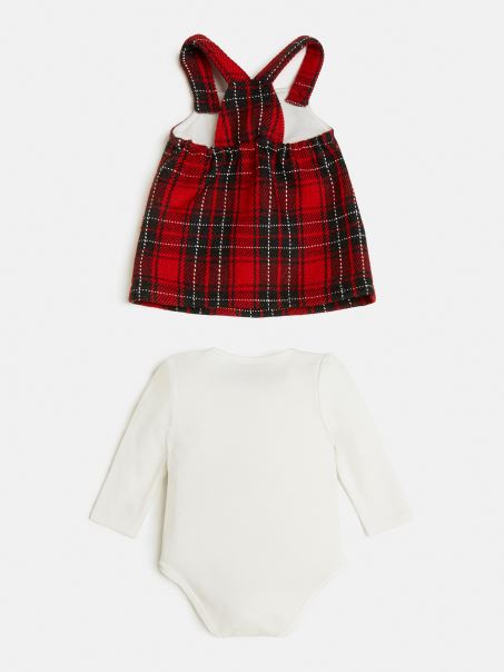 Home| Fată| 0-24m| Set Rochie Cu Imprimeu Tartan Si Body Guess White
