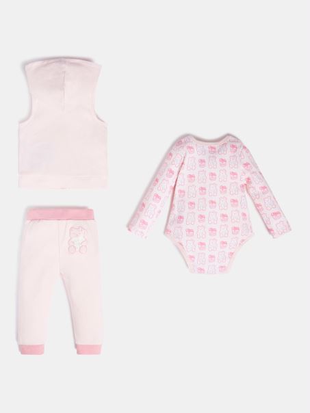 Home| Fată| 0-24m| Vesta Cu Logo în Față și Corp și Pantaloni Guess Roz