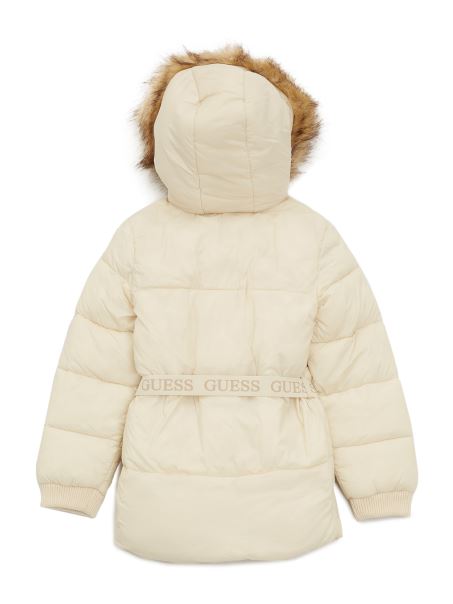 Completați-i Aspectul Pentru Vreme Rece Cu Acest Puf Cald, Cu Glugă Atașată Cu Căptușeală și Ornamente Din Blană Artificială, O Talie Cu Brâu, Cu Fermoar și Butoane.