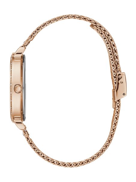 Detaliat Cu O Curea Din Lanț Din Plasă, Acest Ceas Clasic Analogic Va Curge Elegant De Zi Păi Noapte. Tonuri De Aur Roz și Proiectat Cu O Lunetă Cu Cristale. Stil: 14372193