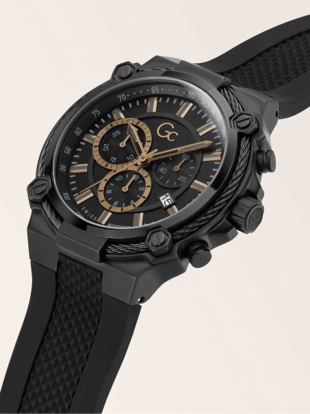 Ceas Cronograf Din Silicon Negru Gc Guess