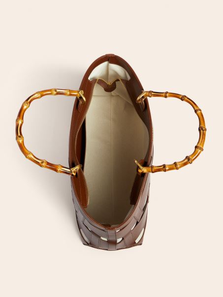 Geantă Maro Guess Aida Din Piele Naturală împletită