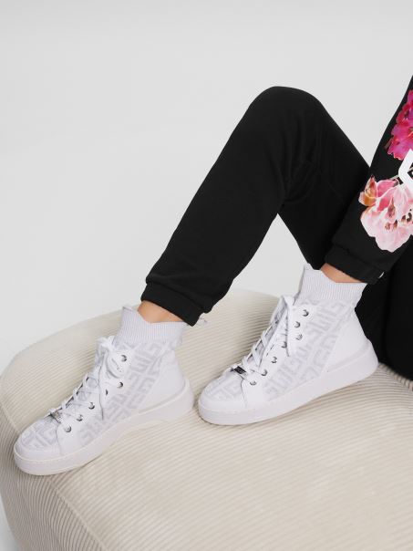 Adidași înalți Cu Logo Tricot Manney Alb Din țesătură Multiplă Guess