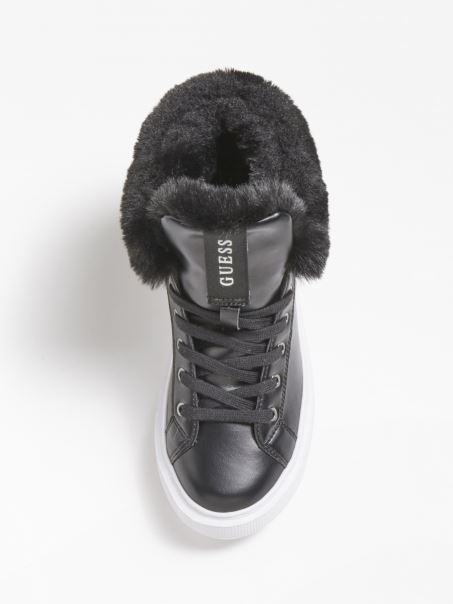 Adidași Negru Guess Histori Cu Blană Artificială înalți