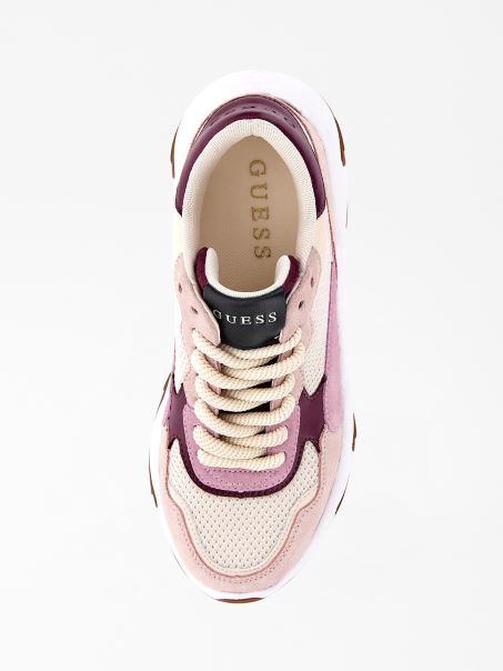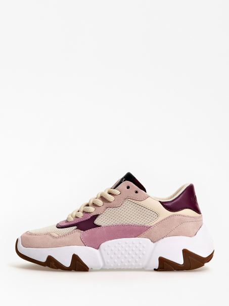 Pantof De Alergare Cu Inserție Din Piele Intoarsa, Multi Roz, Guess