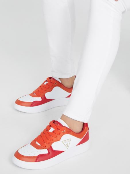 O Pereche De Adidași Din Piele Artificială, Cu Un Design Joasă, Logo Triunghi Gravat în Lateral, Logo La Spate și închidere Cu șireturi.