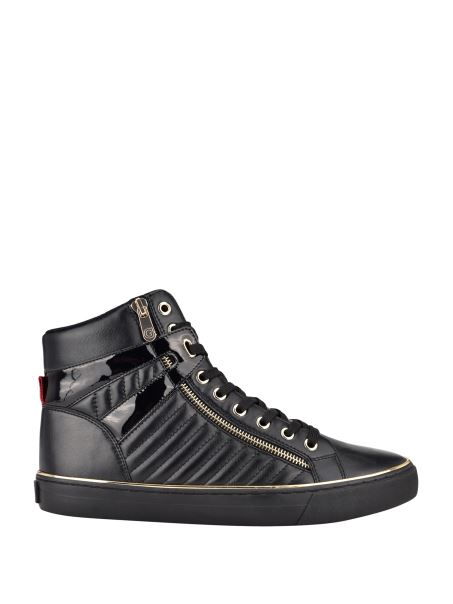 Adidași înalți Din Piele Artificială, Cu Panouri Laterale Matlasate, Plasture Cu Logo Din Cauciuc La Călcâi și Design Cu șireturi Cu Fermoar Lateral.