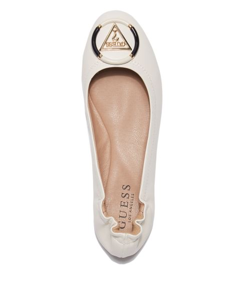 Ideali Pentru Lucru Până în Weekend, Acești Balerini Din Piele Artificială Au O Emblemă Cu Logo Triunghi Auriu, înconjurată De Un Detaliu Cerc, Spate încrețit și Toc Ușor.