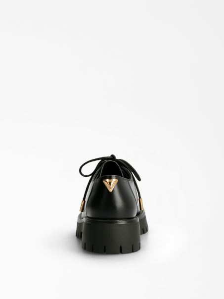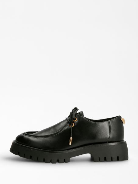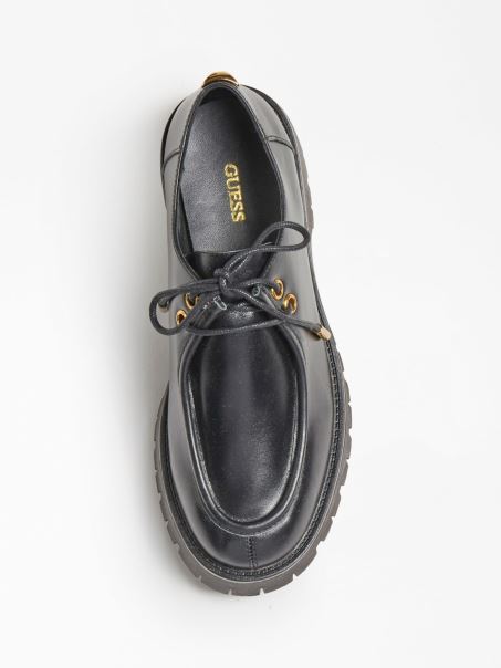 Mocasini Negru Guess Mirka Din Piele Naturala Siret