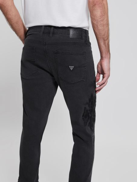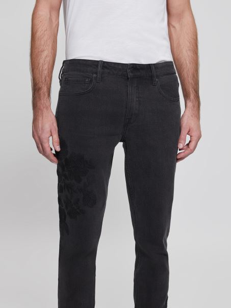 - jet Black Floral Wash: Denim Negru Cu Detalii Florale Brodate. Datorită Naturii țesăturii și A Spălării, Fiecare îmbrăcăminte Are Propriul Său Aspect Unic.
