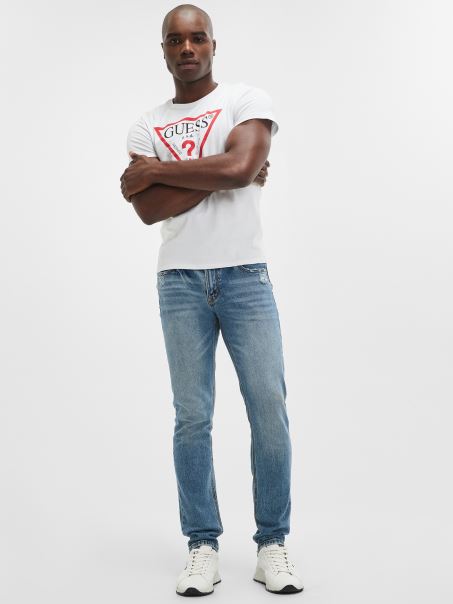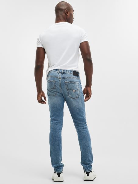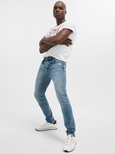 O Pereche De Blues Adevărat De Apucat. Această Pereche De Blugi Slim-fit, Cu Un Picior Conic, Prezintă Un Aspect Viu, Cu Decolorare Subtilă și Decolorare Grea în Față.
