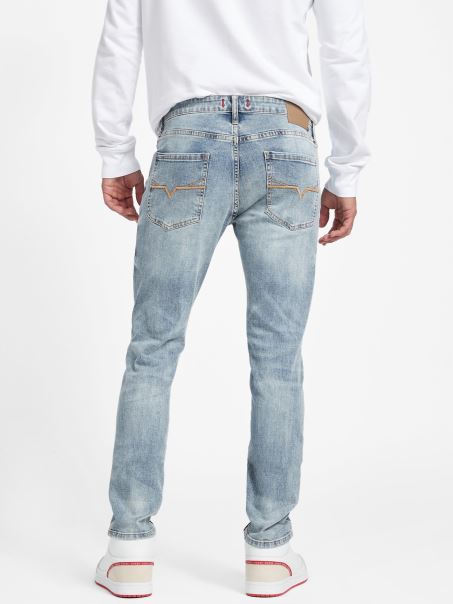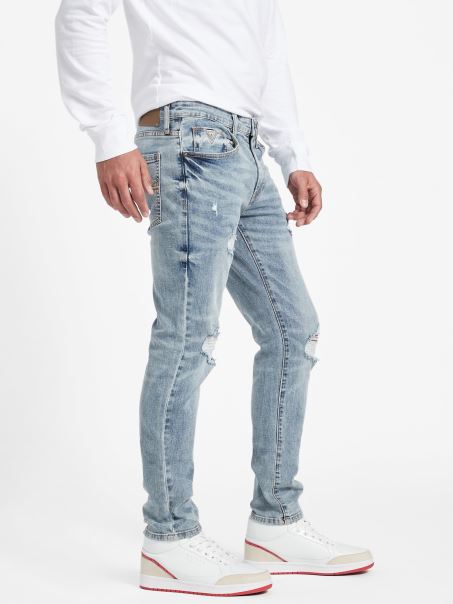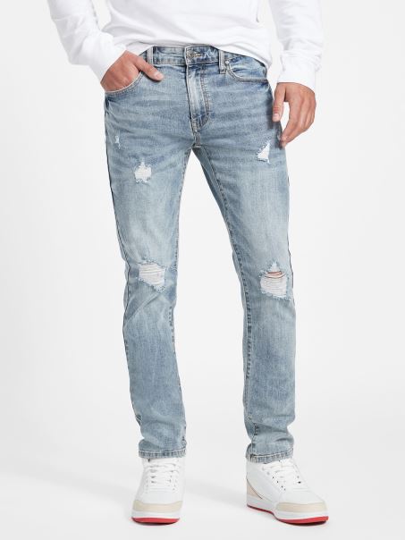 O Pereche De Blugi Skinny Clasici, Cu O Croire Subțire și Talie Mijlocie, Cu Detalii Distruse și Decolorate Pentru Un Aspect Mai Viu. Construit Cu Denim Elastic Pentru Purtare Pe Tot Parcursul Zilei.