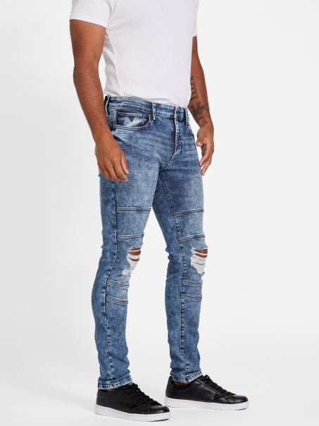 Adaugă Un Plus în Garderoba Ta. Blugi Skinny Cu Detalii Moto Pintuck, Spalare Medie Din Denim, țesătură Distrusă în Mod Intenționat La Genunchi, Construcție Cu Cinci Buzunare, Decolorare și Mustață Intenționată. Conține Fibre De Bumbac Reciclate și Plastic Reciclat.