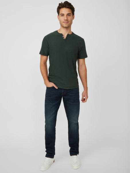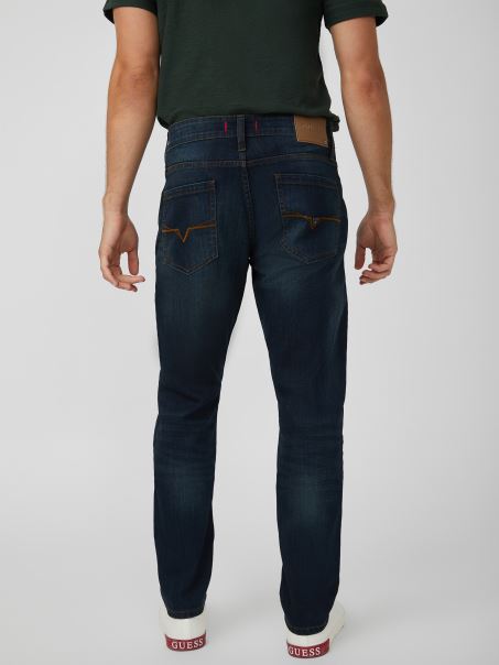 Perfect Pentru ținuta De Weekend, Acești Blugi Slim-fit Au Un Picior Conic Cu Mustăți și Detalii Decolorate Pentru Un Aspect Viu.