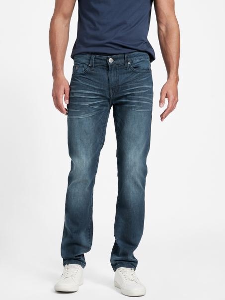 This pair of jeans features a modern slim fit and classic straight leg. Finished with a comfortable medium rise and whiskered details.