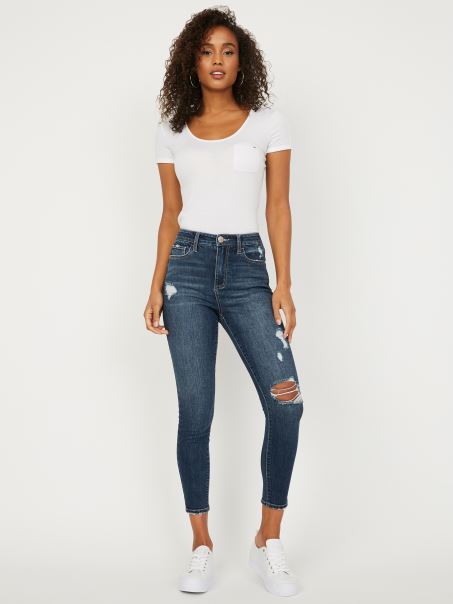 Home| Unisex| îmbrăcăminte| Blugi| Dark Destroy Wash 30 Inse Eco Simmone Blugi Skinny Cu Talie Mare Guess