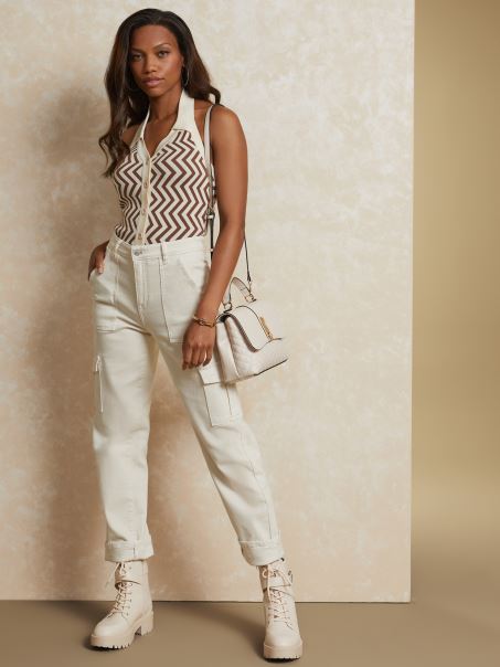 O Nouă Interpretare A Unui Clasic, Acești Pantaloni Cargo Sunt Confecționați Dintr-o Fabricație Din Denim și Au Talie înaltă, Picior Drept și Buzunare Utilitare.