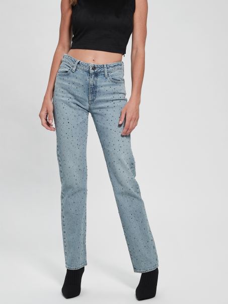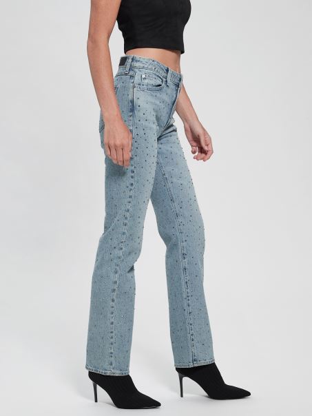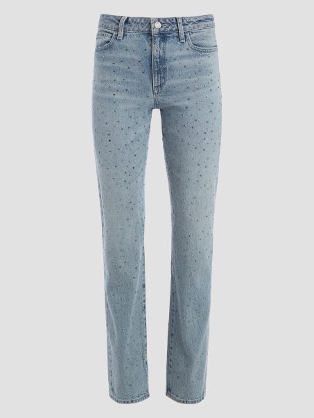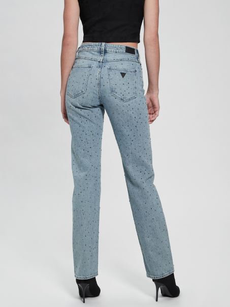 Un Clasic Actualizat, Acești Blugi Din Denim Oferă O Potrivire Subțire Cu Talie Mare și Prezintă Detalii Cu Paiete De Cristal împânzite Pe Toată Silueta Relaxată Cu Picioare Drepte.