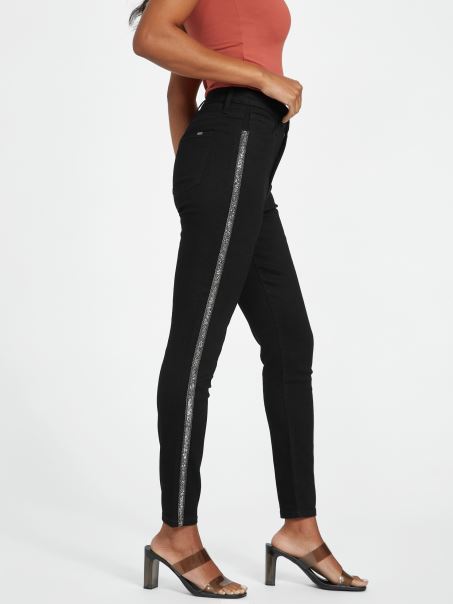 Amestecați Un Pic De Glamour Cu Acești Blugi Skinny Ultra-măgulțători, Cu Detalii Cu Strasuri Pe Picioare și O Potrivire Super înaltă.