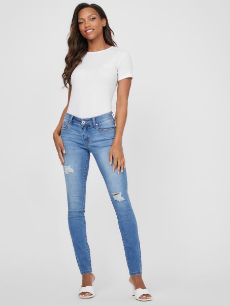 O Pereche De Blugi Skinny Cu O Potrivire Clasica, Mustati, Decolorare Intentionate Si Detalii Distruse Pentru Un Look La Moda.