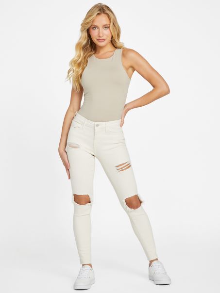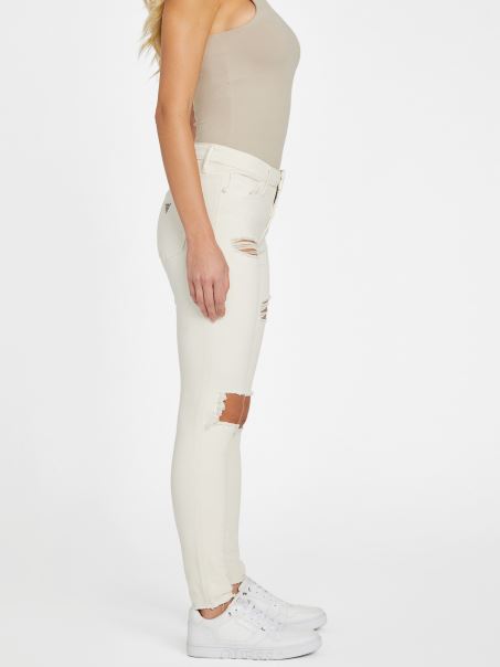 Adaugă Un Plus Următorului Tău Look Cu This Pereche De Blugi Cu Talie Mijlocie, Proiectați într-o Siluetă Subțire, Cu Detalii Distruse în Față și Tivuri Uzate La Glezne. Conține Fibre De Bumbac Reciclate.