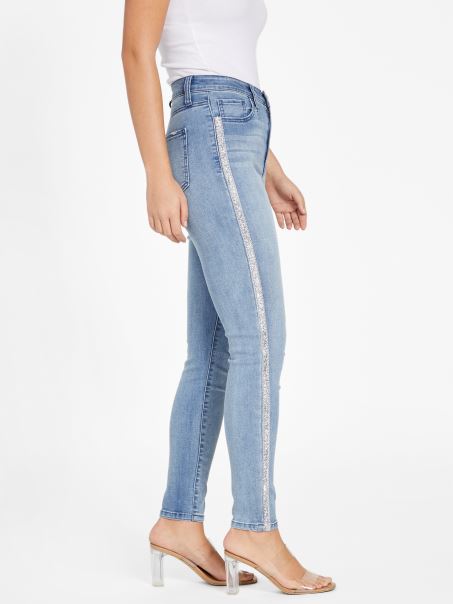 Amestecați Un Pic De Glamour Cu Acești Blugi Skinny Ultra-măgulțători, Cu Detalii Cu Strasuri Pe Picioare și O Potrivire Super înaltă.