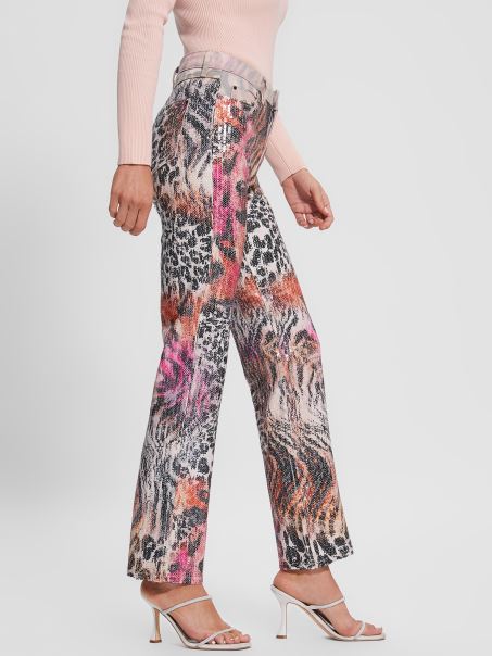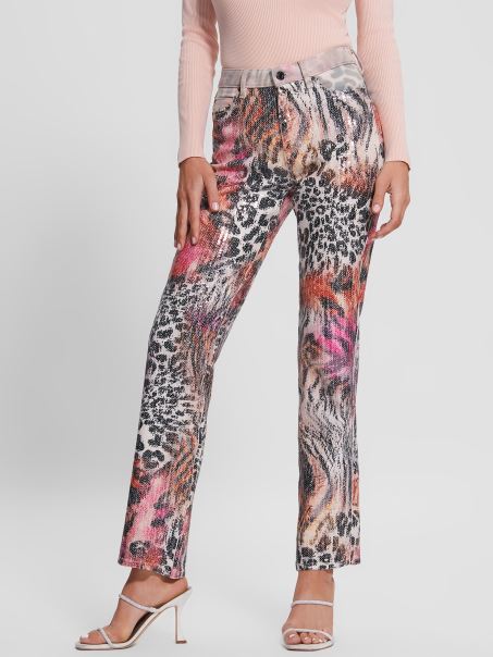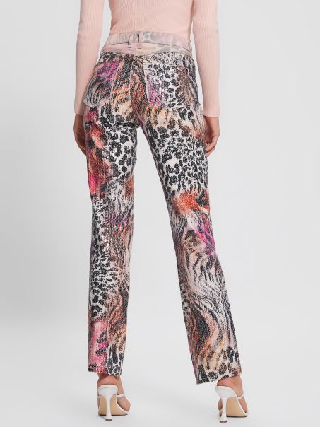 O Pereche De Blugi Drepți Fioroși, Cu Un Animal Print Mixt și O Lungime De Gleznă.