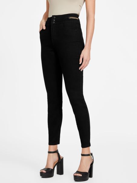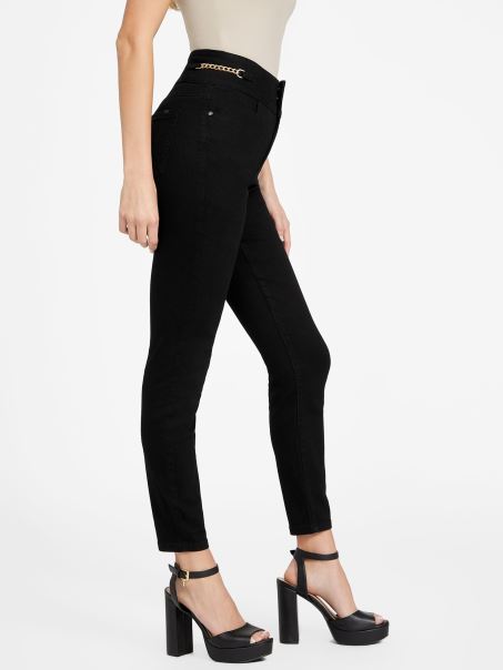 Blugi Skinny Din Denim Actualizați Cu O Margine. Proiectat Cu O Siluetă Clasică Skinny, Detaliu De Lanț în Talie, Talie înaltă Cu Trei Nasturi și Construcție Cu Patru Buzunare.