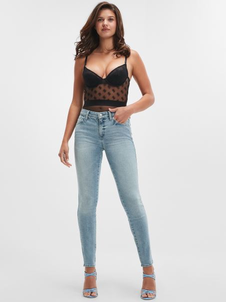 O Potrivire Skinny Ridică Acești Blugi Curbi Cu O Potrivire Skinny, Talie Medie, Spălare Ușoară și Decolorare. Oferă Spațiu Suplimentar Prin șold, Coapsă și Scaun Pentru A Vă îmbrățișa Perfect Curbele. Realizate Din Plastic Reciclat.