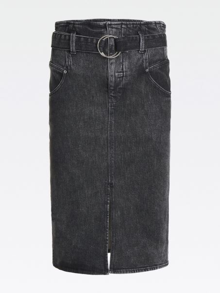 w0yd47d42k2- fustă Din Denim Longuette Din Bumbac Elastic.