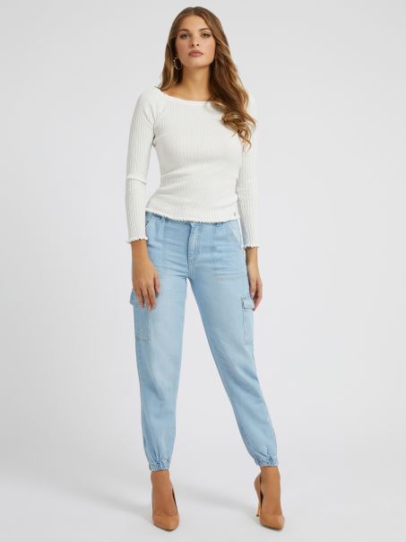 w2ya20d4mu3- pantaloni Cargo Din Denim Din Amestec De Bumbac.