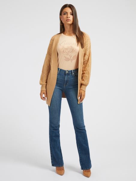 Home| Femei| îmbrăcăminte| Bluza| Cardigan Bej Din Amestec De Lână Tricot Cablu Guess
