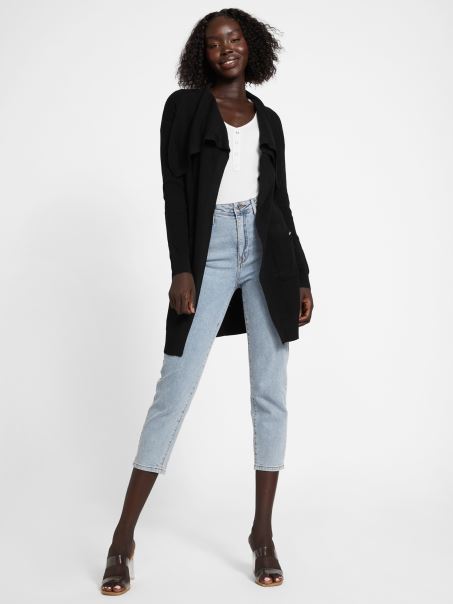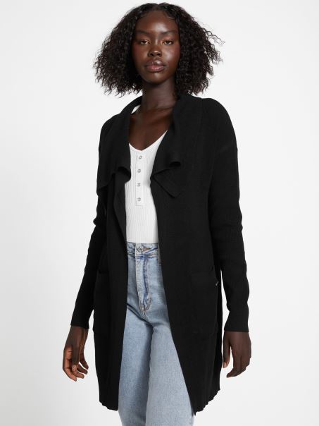înfășurați-vă în Acest Cardigan Moale, Cu Paragate, Cu Revere Largi, Față Deschisă, Buzunare și Mâneci Lungi.