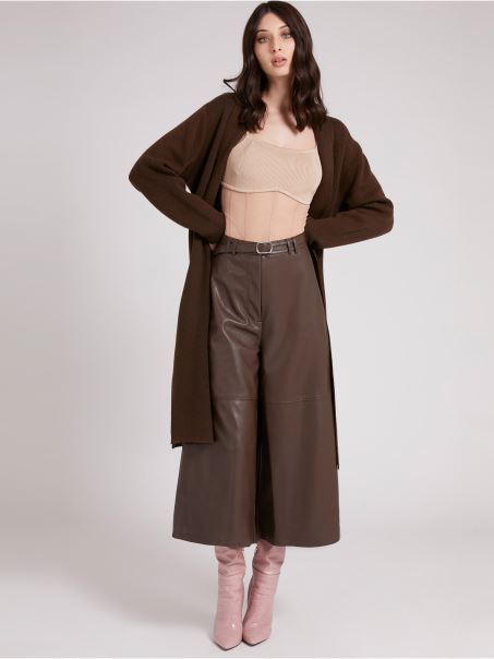 Guess Cardigan Cu Brâuri în Amestec De Cachemere Maro