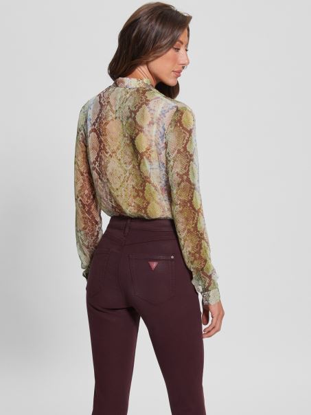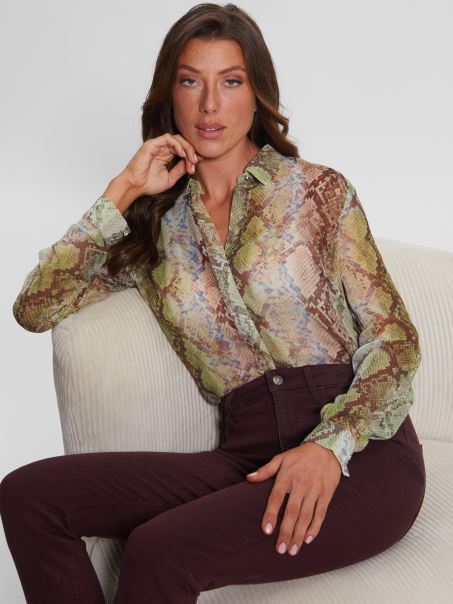 Bluza Cu Imprimeu Sifon Eco Clouis Guess Glam Imprimeu Sarpe