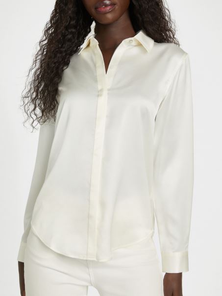 Cămașă Din Satin Alb Porumbel Guess Honor
