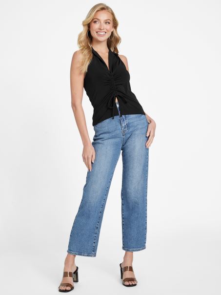Noaptea Târziu Sau Noaptea întâlnită, Acest Top Fără Mâneci Are Un Decolteu în V Cu Guler și Detalii Cu Volan.