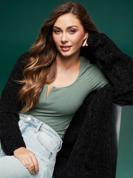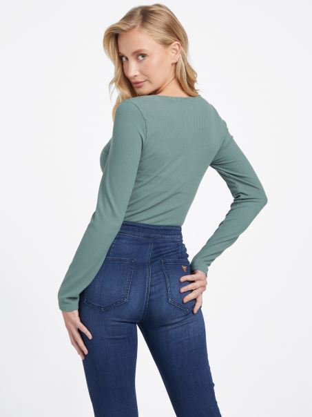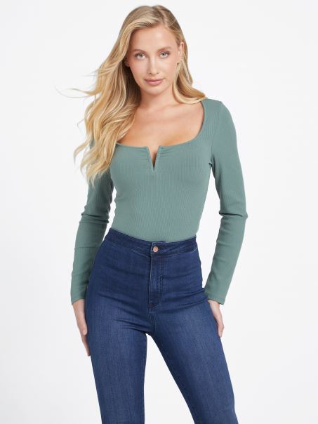 Noul Tău Erou Din Dulap, Acest Top Din Tricot în Coastă, Cu Un Decolteu Pătrat, Cu Detaliu în V Structurat Cu Crestături și Mâneci Lungi. Conține Fibre Din Păduri Gestionate Responsabil.