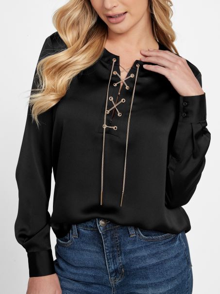 Ideal Pentru A Te îmbrăca în Sus Sau în Jos, Acest Top Din Satin Are Un Decolteu Deschis, Cu Detalii De Lanț Cu șireturi și Mâneci Lungi.