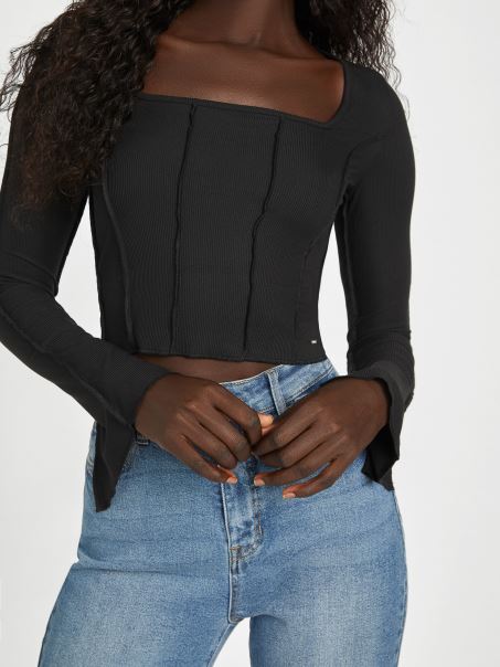 Home| Femei| îmbrăcăminte| Bluze| Jet Black Eco Usra Top Cu Mânecă Lungă Guess