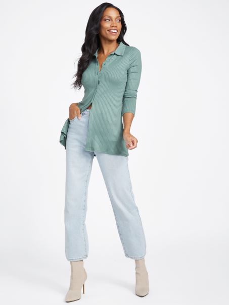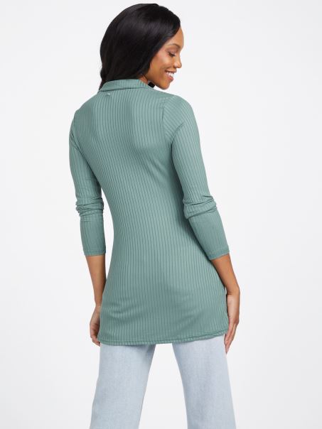 Confecționat într-o Confecție Elegantă Din Tricot în Coastă, Care Conține Plastic Reciclat, Acest Top Cu Mânecă Lungă Are Guler Pliat și închidere Cu Nasturi în Față Care Se Opresc La Jumătatea Distanței Pentru O Siluetă Drapată, Cu Paragate.