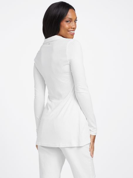Confecționat într-o Confecție Elegantă Din Tricot în Coastă, Care Conține Plastic Reciclat, Acest Top Cu Mânecă Lungă Are Guler Pliat și închidere Cu Nasturi în Față Care Se Opresc La Jumătatea Distanței Pentru O Siluetă Drapată, Cu Paragate.