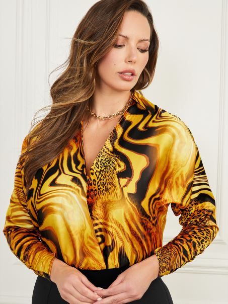 Body Cu Mâneci Lungi Apus De Soare Auriu Imprimeu Guess Apus De Soare