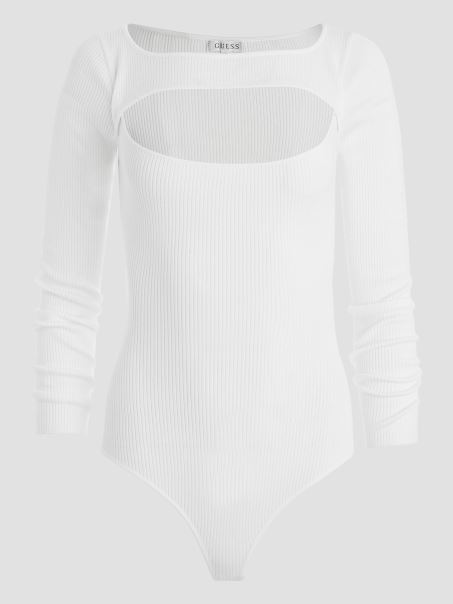 Decupajele Aprinse Evidențiază Acest Body Din Tricot în Coastă, Cu Decolteu Barcă, Mâneci Lungi, Potrivire Tanga și închidere Cu Butoane. Fibre Din Păduri Gestionate Responsabil.