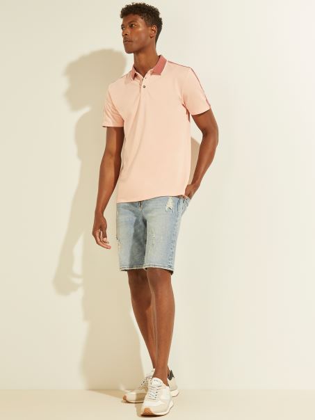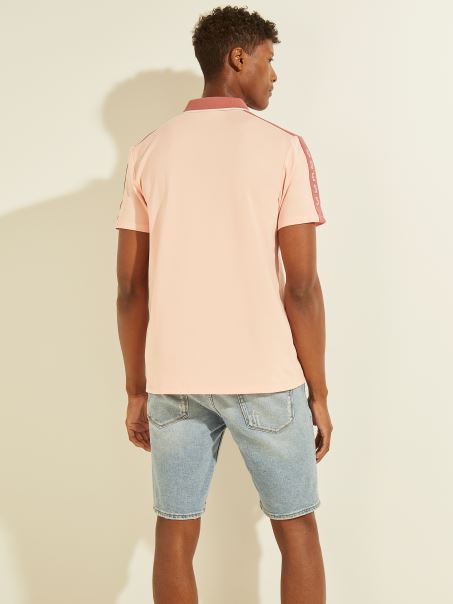 Blossom Roz Deschis Piqué Logo Bandă Polo Guess